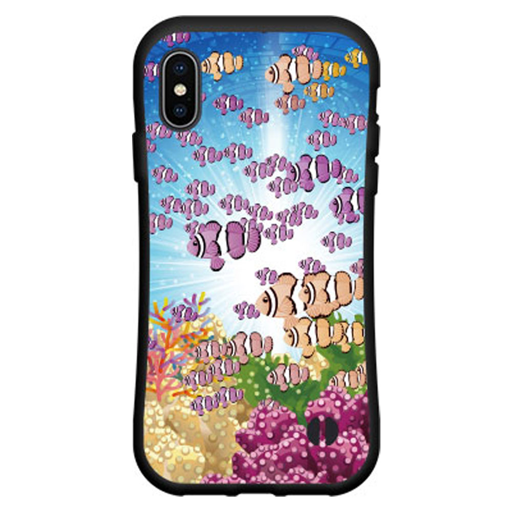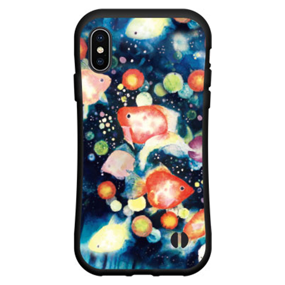 液晶保護フィルム付 iPhone XRアイフォン テンアールdocomo au SoftBank落としても割れにくい驚きの衝撃吸収力豊富なオリジナルデザイン耐衝撃 ハイブリッドケース魚群