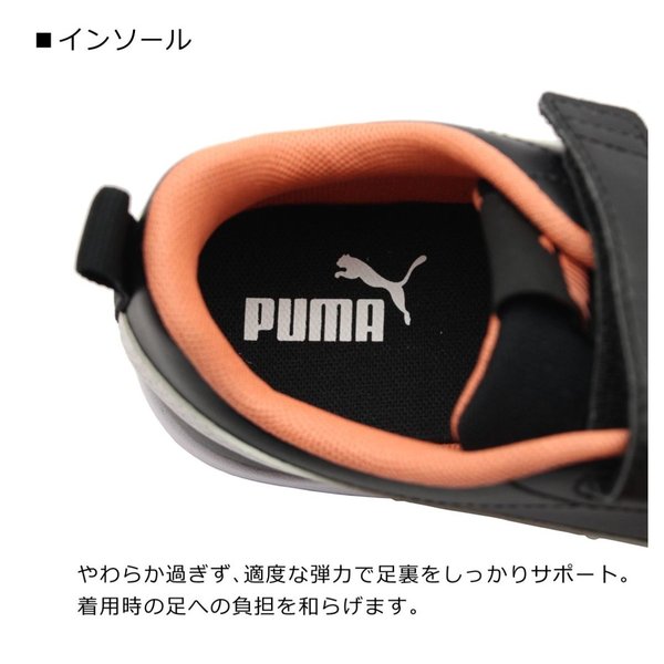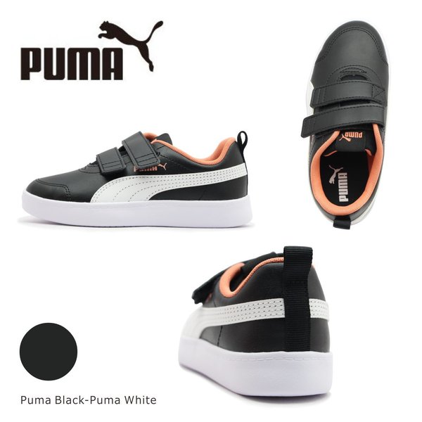 PUMA プーマ キッズ スニーカー コートフレックス v2 V PS ジュニア シューズ ベルクロ 靴 ブラック 軽量のEVAソールにクリーンでシンプルなアッパーデザイン、 2本の面ファスナー仕様で、小さなお子さまでも 着脱しやすくなっています。