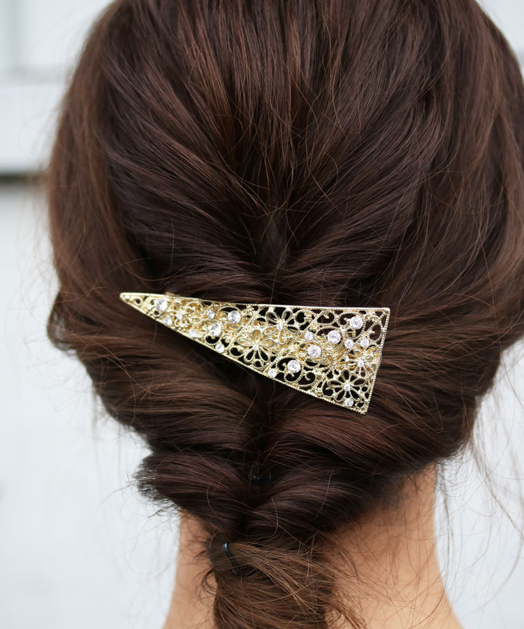 INFORMATION 透かしデザインの三角バレッタ。