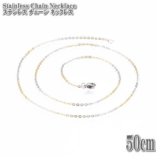 ステンレスネックレス バイカラー アズキチェーン 50cm 1.5mm幅 ネックレス ステンレスチェーン Stainless ステンレス チェーン 小豆 ゴールド シルバー
